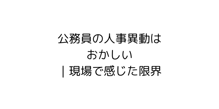 公務員の人事異動は、正直「異常」だと思いませんか? 公務員の人事異動について、民間企業から転職してきた人がこんなことを言っていました。 「公務員の異動って、民間で言えば“転職”と同じレベルですよね」 この一言、あまりにも的確で忘れられません。... -