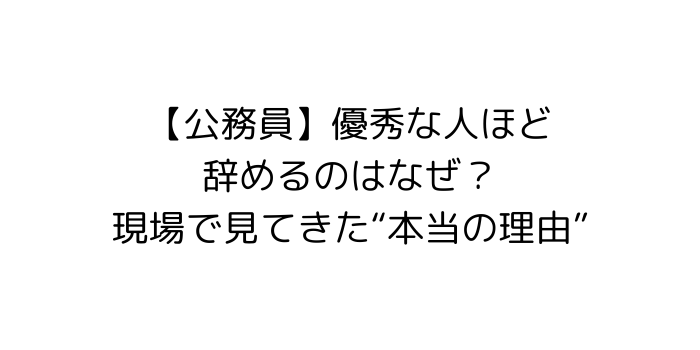 【公務員】優秀な人ほど辞めるのはなぜ?現場で見てきた“本当の理由”
