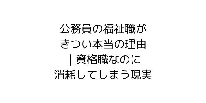 ※この記事は、社会福祉士・精神保健福祉士・社会福祉主事・保健師など、資格職として自治体で働いている公務員の方に向けて書いています。 「資格を取って、専門職として働きたかった」「人の役に立つ仕事がしたかった」 そう思って公務員の福祉職になった... -