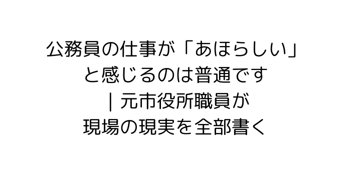 公務員の仕事をしていて、 「これ、あほらしくない?」「何のためにやってるんだろう…」 と感じたことがあるなら、あなたはおかしくありません。 むしろその感覚は、ちゃんと考えて、真面目に仕事をしている証拠です。 私は市役所で10年間働きました。その... -